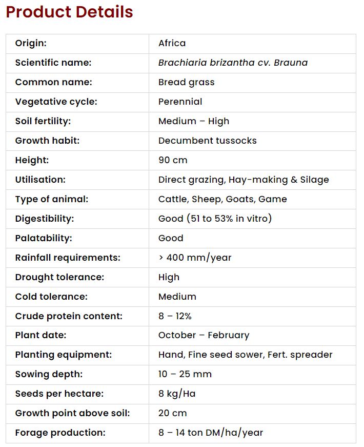 | Scientific name: | Brachiaria brizantha cv. Brauna |